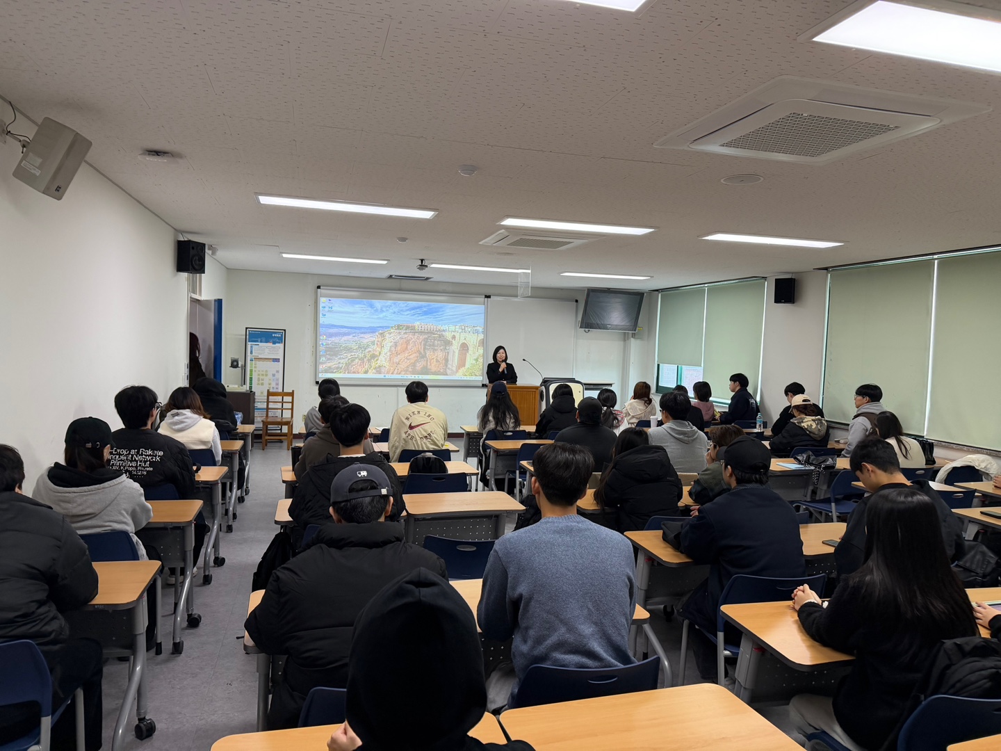 무역학과 재학생들을 위해 대학생활과 나의 길이라는 주제로 특강을 진행하셨습니다.